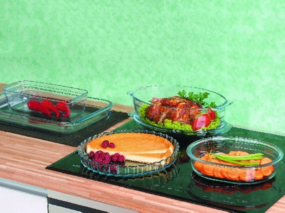 Brytfanna owalna o wymiarch 30 x 21 cm marki Ocuisine. Linia wysokiej jakości naczyń żaroodpornych wykonanych ze szkła borokrzemowego o wyjątkowych właściwościach: