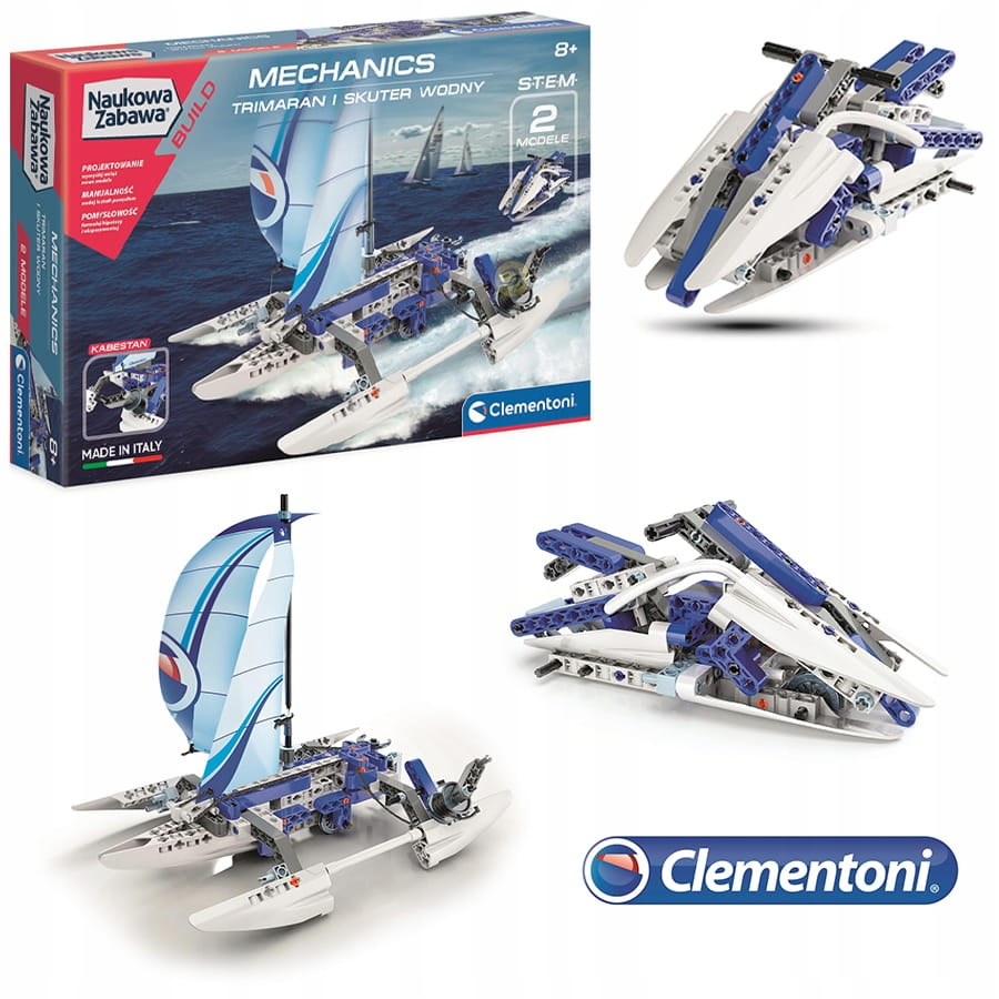Ponad 130 komponentów, z prętami, kołami pasowymi, panelami i mnóstwem zabawy, modele robocze: trimaran i fantastyczny skuter wodny!