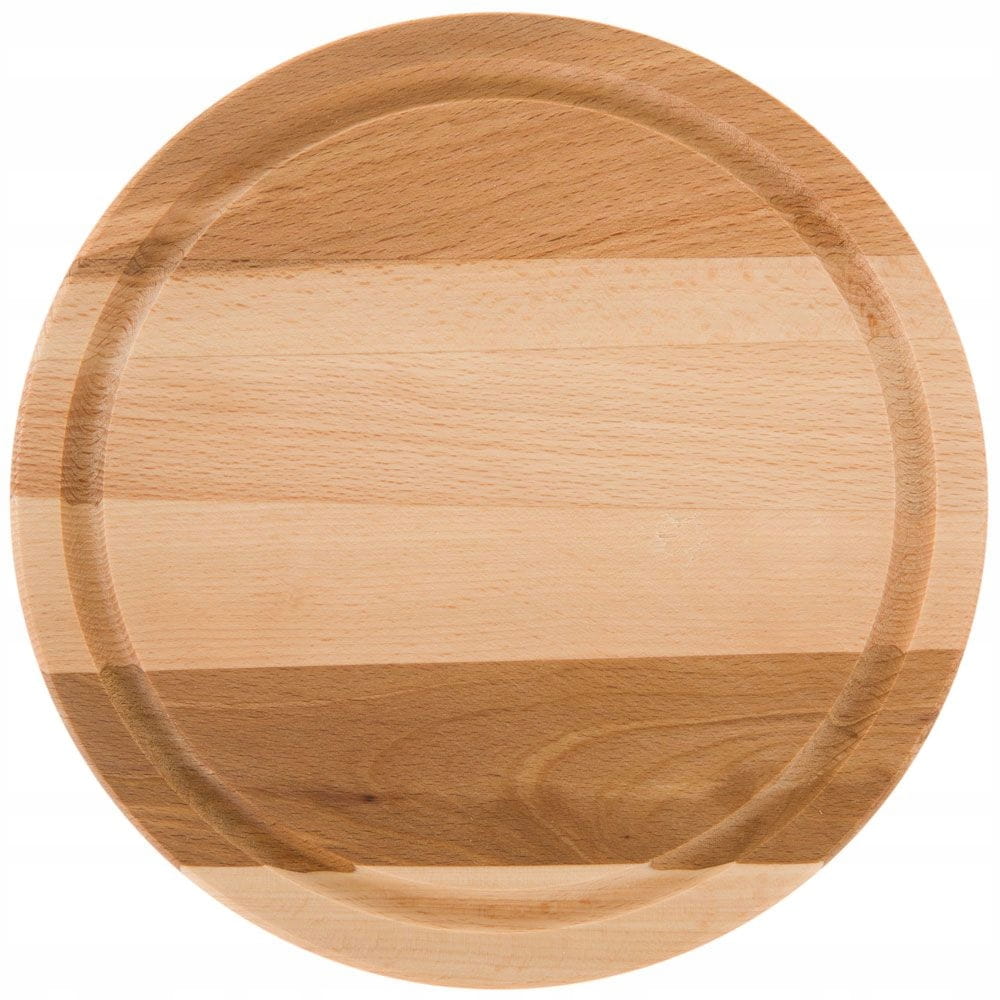 Okrągła o średnicy 24 cm. Delikatna rynienka wyżłobiona przy krawędzi deski pozwala na zbieranie się soków z krojonych warzyw i owoców.