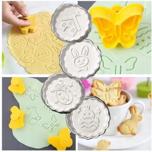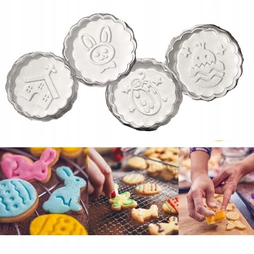 Foremki w formie stempla - wystarczy przyłożyć foremkę do ciasta i nacisnąć tłoczek, dzięki swojemu mechanizmowi sprężynowemu odbijemy idealnie wzór ze zdobieniem. Cechą szczególną tych foremek jest to, że działają jednocześnie jako foremka i stempel.