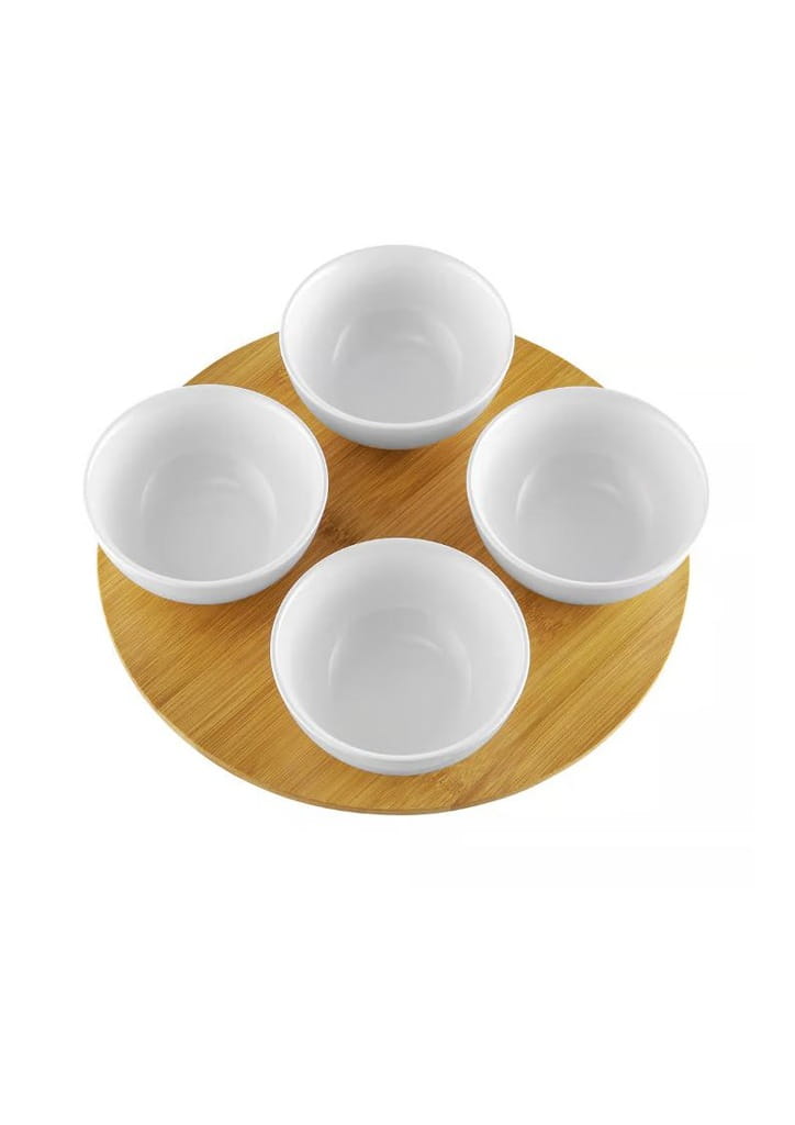 Oryginalne zestawy miseczek i akcesoriów na bambusowej podstawie pięknie prezentują się na stole. Idealne do serwowania przystawek oraz przekąsek.