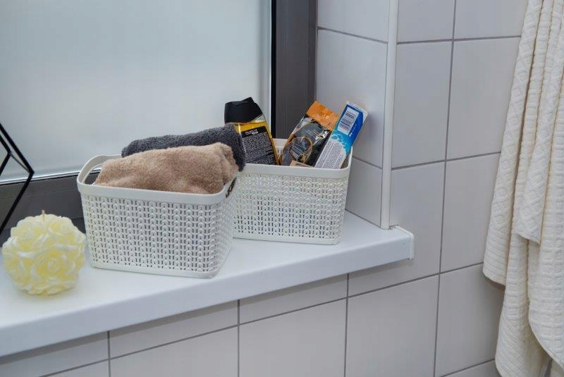 Może posłużyć jako tymczasowy schowek na akcesoria łazienkowe, pojmenik na kosmetyki, detergenty i inne drobne przedmioty, które nie mają swojego wyznaczonego miejsca w Twoim pomieszczeniu.
