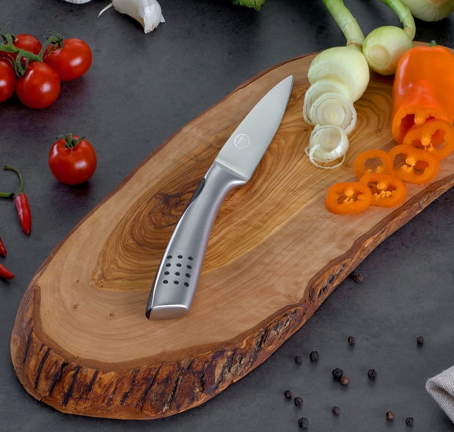 Nóż-obierak MG Home z serii Professional dzięki szpiczastemu i krótkiemu ostrzu pozwoli na szybkie i precyzyjne obieranie warzyw i owoców.