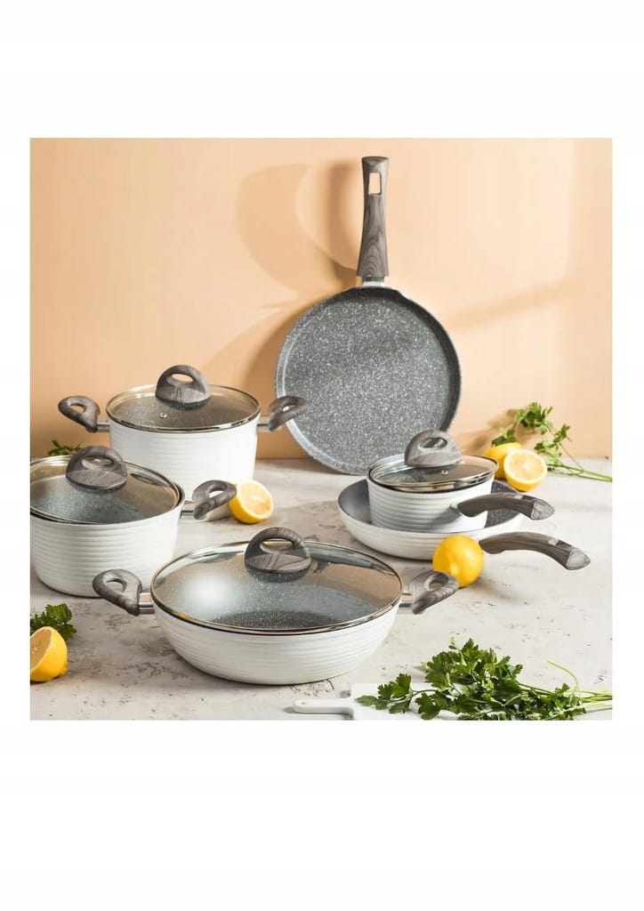Wavy to naczynia o oryginalnym wyglądzie, wykonane z odkuwanego aluminium odpornego na odkształcenia. Produkty wewnątrz pokryte zostały oryginalną powłoką Qualum Basic Stone Edition o bardzo dobrych właściwościach nieprzywierających oraz bardzo dobrej odporności na ścieranie. Rączki pokryte są specjalnym materiałem Soft Touch, zapewniają pewne trzymanie w dłoni.