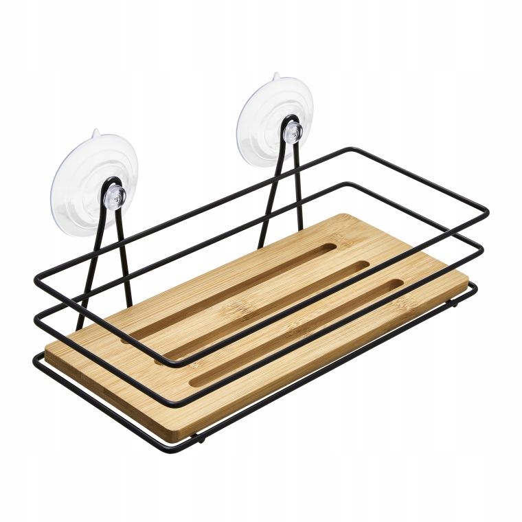 Półka łazienkowa pojedyńcza Scandic Bambus - czerń. Przyssawki