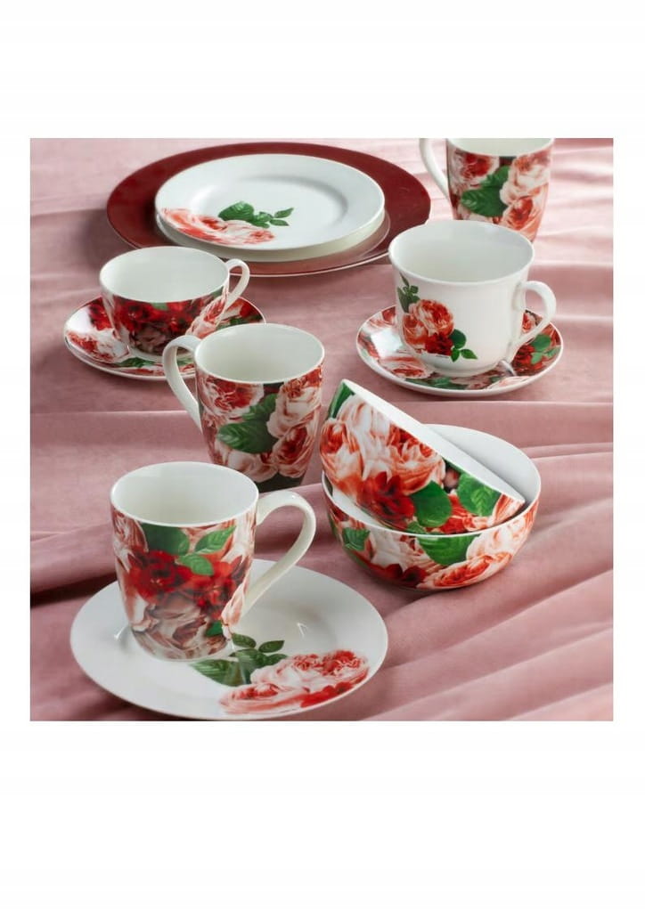 Efektowny i bogaty wzór kwiatów piwonii będzie pasować do większości kuchni. Wykonany z wysokiej jakości porcelany New Bone China.