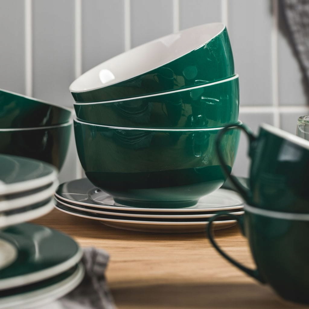 Klasyczna i elegancka kolekcja, o tradycyjnym okrągłym kształcie i gustownym zielonym rancie. Aura Green to doskonały wybór do codziennego użytkowania, ale również na Święta i wszelkie uroczystości.