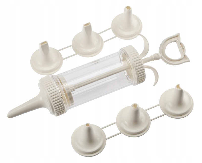 - Zestaw zawiera 1 szprycę oraz 7 różnych, wymiennych końcówek